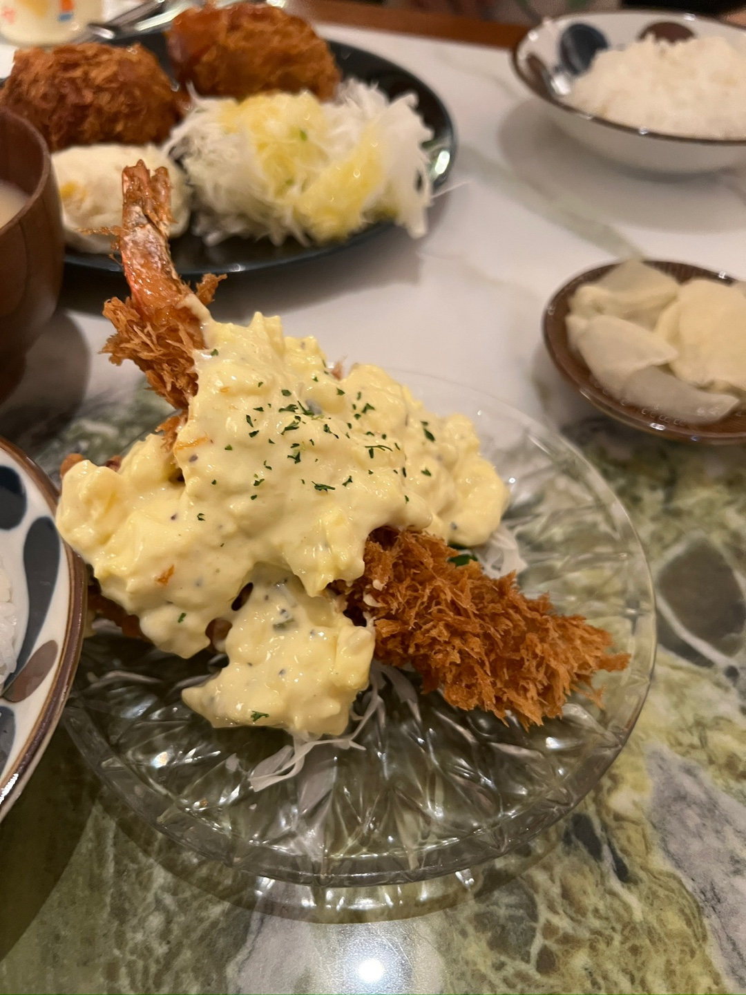 새우튀김 위에 듬뿍 올려진 타르타르소스!