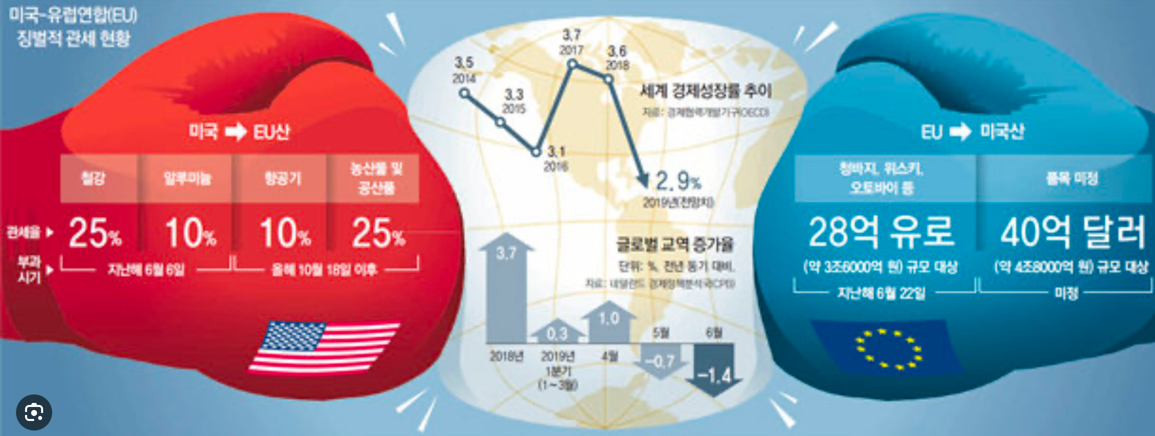 이번 미국-EU 갈등은 트럼프 행정부의 보호무역 정책 재가동이 그 발단이었습니다.