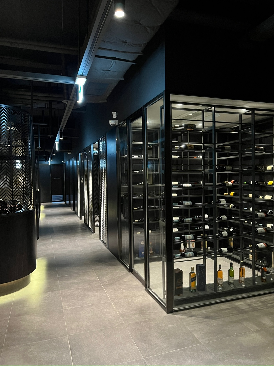 📍 Atmosphere – Sleek Black Interiors and a Wine Cellar Surprise