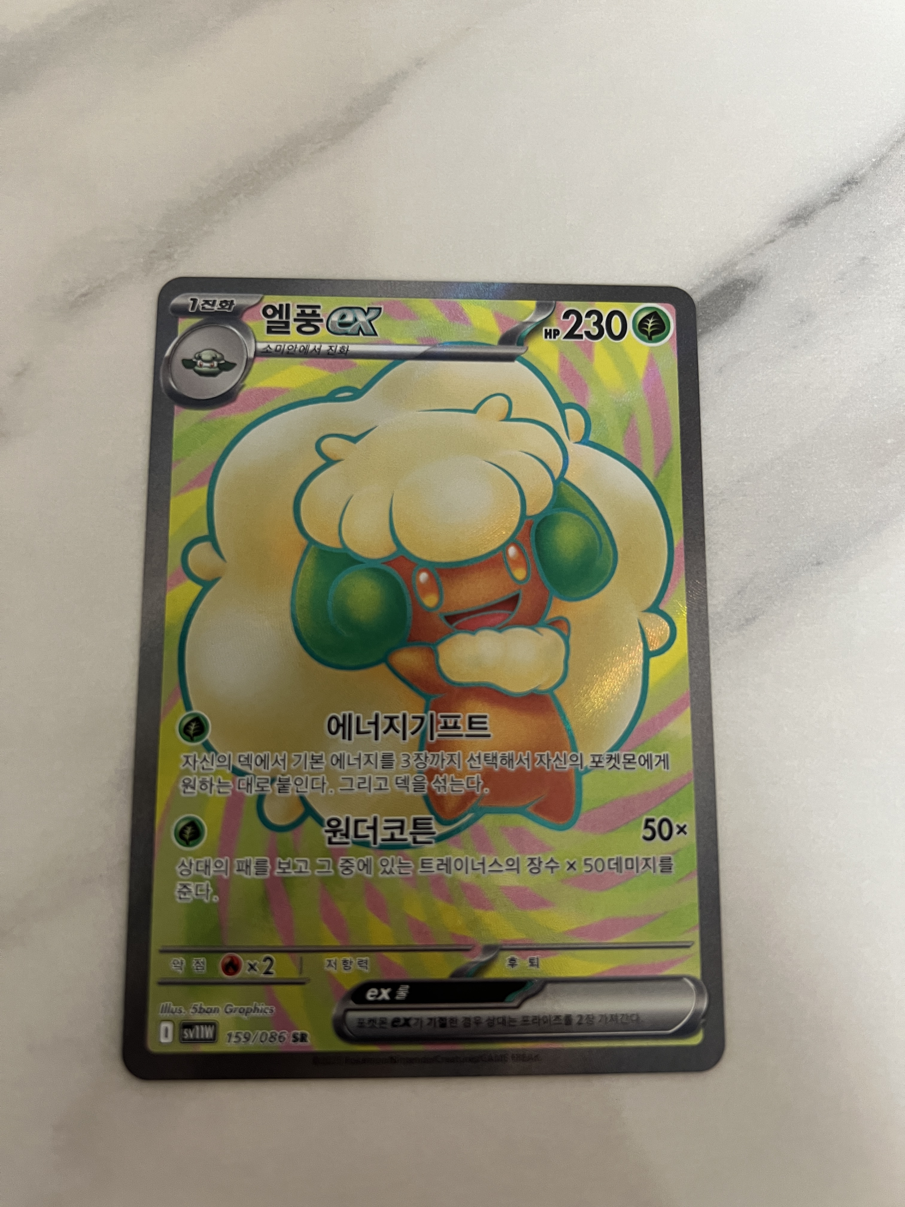 첫 번째로 등장한 건 바로 엘풍 EX SR! 알록달록한 배경에 귀여움과 강력함을 동시에 품은 카드였어요. ‘에너지 기프트’라는 기술 덕분에 덱 운영에서도 쓸만한 카드라 실전 플레이어들에게도 인기가 많습니다. 무엇보다 SR 특유의 반짝임이 소장욕구를 폭발시킵니다. ✨