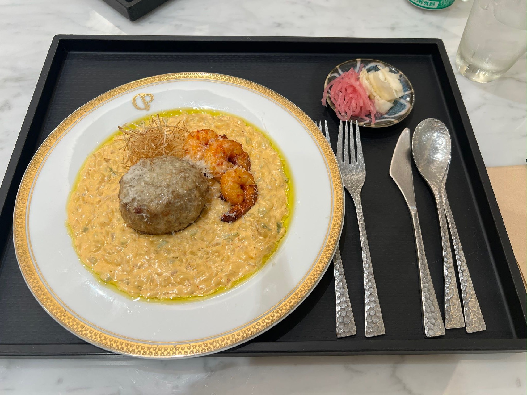 리소토 스타일 밥 위에 함박스테이크가 올라가 있었는데,